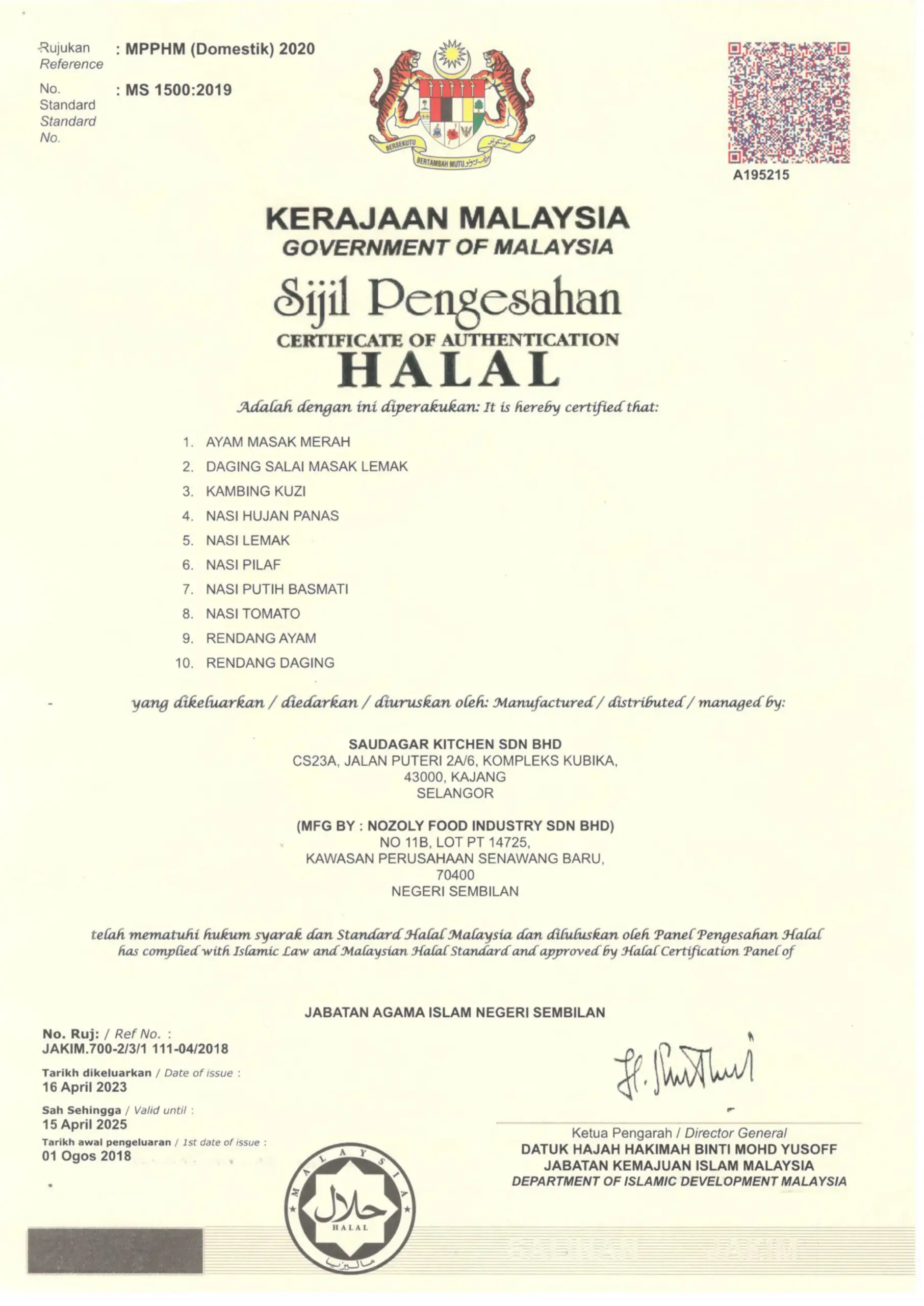 Dengan pensijilan Halal, GMP dan pelbagai pengiktirafan lain, KEMBARA MEALS menyediakan hidangan premium yang selamat dan siap untuk pengembaraan di seluruh dunia.